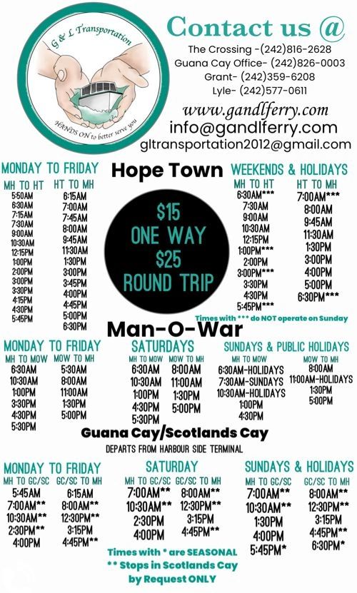 Once at MHH, it is a short drive to the ferry dock. Taxis will be available at the airport, however if you wish to arrange private transportation, you can contact a local driver on WhatsApp: